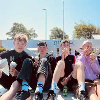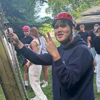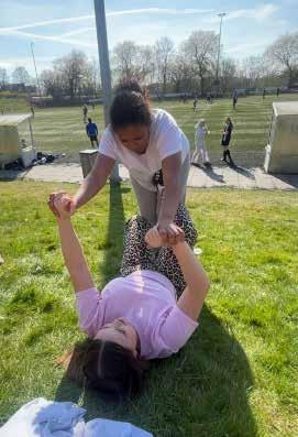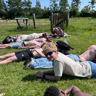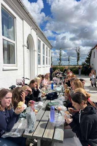 Udenfor havde lærerne sat en glidebane op på græsset, og det var helt klart højdepunktet. Vi kastede os ned ad den igen og igen – nogle lavede tricks, andre gled skævt af, men alle havde det sjovt. Mens andre lå og solede sig ved siden af. Det var sådan en dag, hvor man virkelig bare nød at være sammen og have det sjovt.