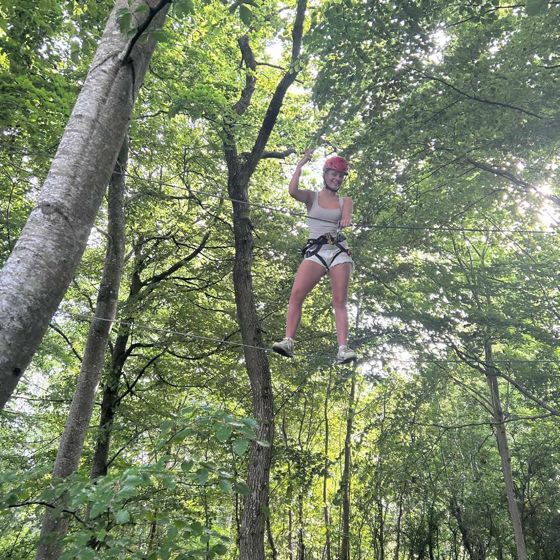 Efter vi havde haft store vanddag, gik vi ind og pakkede til vi skulle med bussen til Mosbjerg Friskole. Her skulle vi sove til dagen efter. Vi fik i løbet af dagen lov til at komme oppe og klatre på deres Go High bane, hvilket jeg synes var meget sjovt. Det brugte vi så det meste af den første dag på. Ellers hyggede vi bare rundt på skolen og gik en tur ned i den lokale Brugsen.