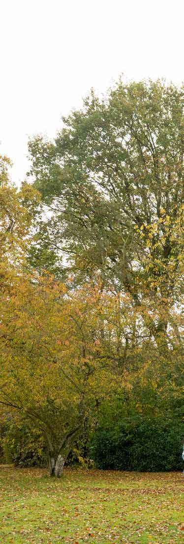 Efter interviewet går vi ud i haven, hvor vi tager billeder samme sted, hvor mange generationer før Gudrun også har stået.