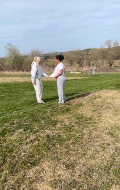 Lige pludselig kan vi høre nogle af pigerne oppe foran, og vi tænker alle sammen fedt, så kan vi lige komme op og snakke lidt med dem. Det vi kommer frem til er så, at en af de andre pigekanoer sidder på tværs af åen. Den ene sidder og råber ”Piger jeg skal nok ofre mig og hoppe i”, og én af de andre sidder og griner, mens den tredje forsøger at få dem fri. Vi kommer så hen til dem og får trukket dem fri efter nogle forsøg.
