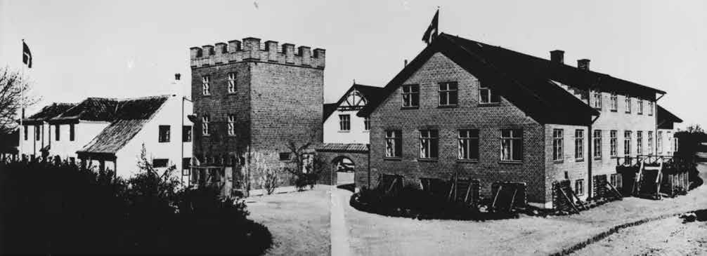 De kraftige træstativer for vinduerne i hovedbygningen på Halvorsminde, fortæller at billedet er taget under 2. verdenskrig. Da en del af kælderetagen fungerede som beskyttelsesrum.