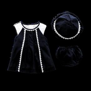 Cute little pleated comfortable and trendy dress with lace trim with co-ordinating headband and underpants. The dress is lined for comfort