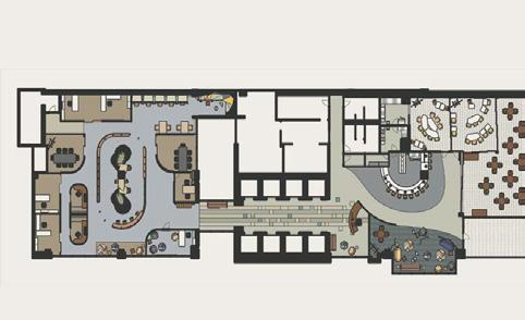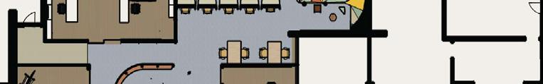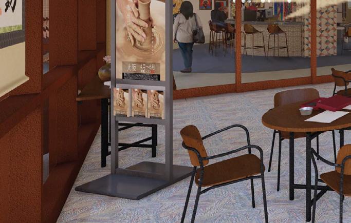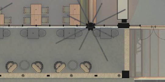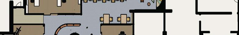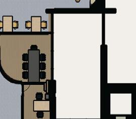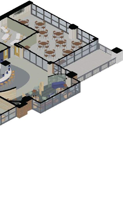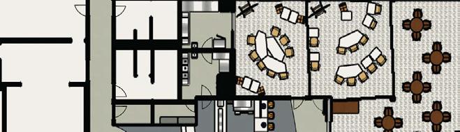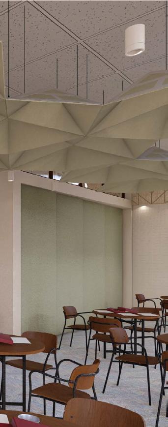 Sliding partition walls fold away to expand the events space into the classrooms, lounge, and café to host larger groups.