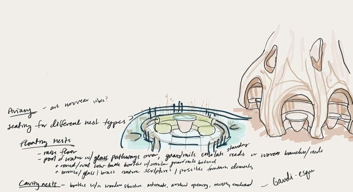 Inspired by the distinct nesting types employed by birds found throughout the varied ecosystems of Central Florida, guests are immersed in a fantstical abstraction of local landscapes while enjoying wood-fired, locally-sourced dishes served up family-style.
