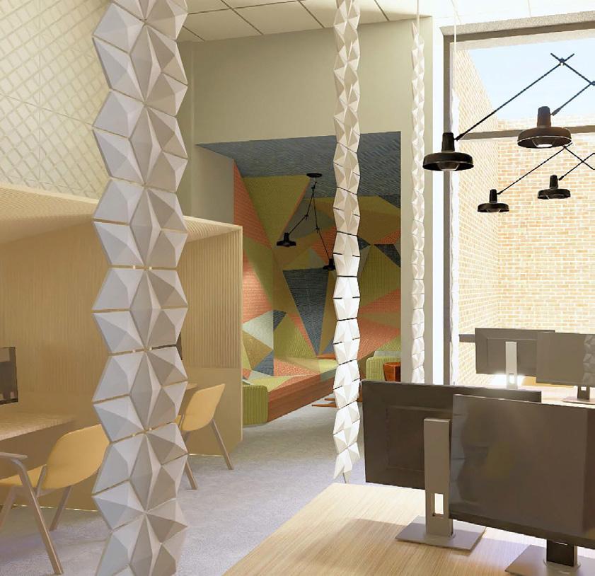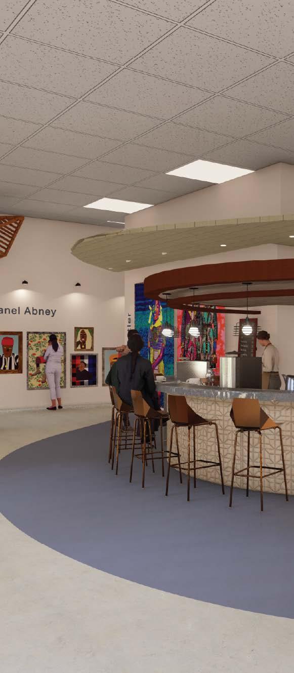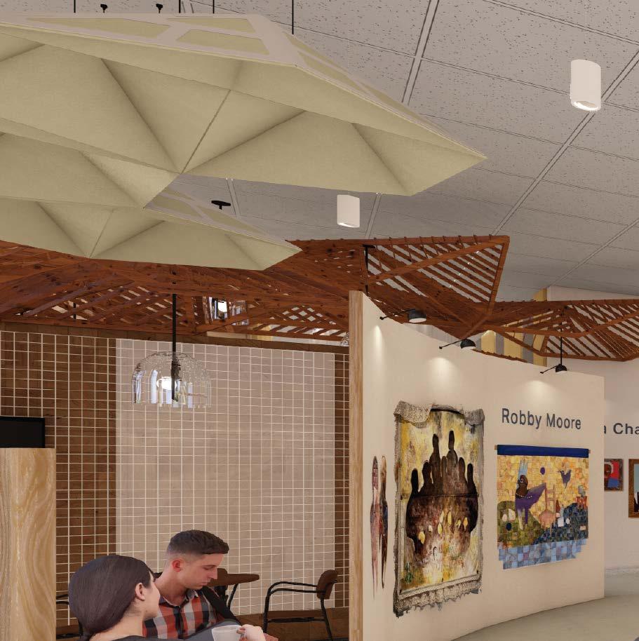 Referencing local geography and the West Virginia tradition of quilting, the Goldfinch Center serves to stitch together a community from the diverse cultures and identities that make up the fabric of Morgantown and WVU, creating a space of comfort and warmth, providing a sturdy backing of support for those at their most threadbare, and helping to fabricate a wide network of social and professional bonds