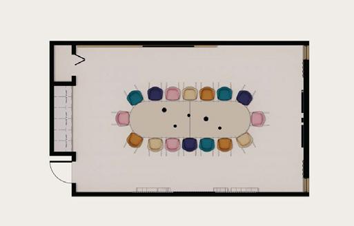 Folding tables and stacking chairs allow for flexibility in the changeable space.