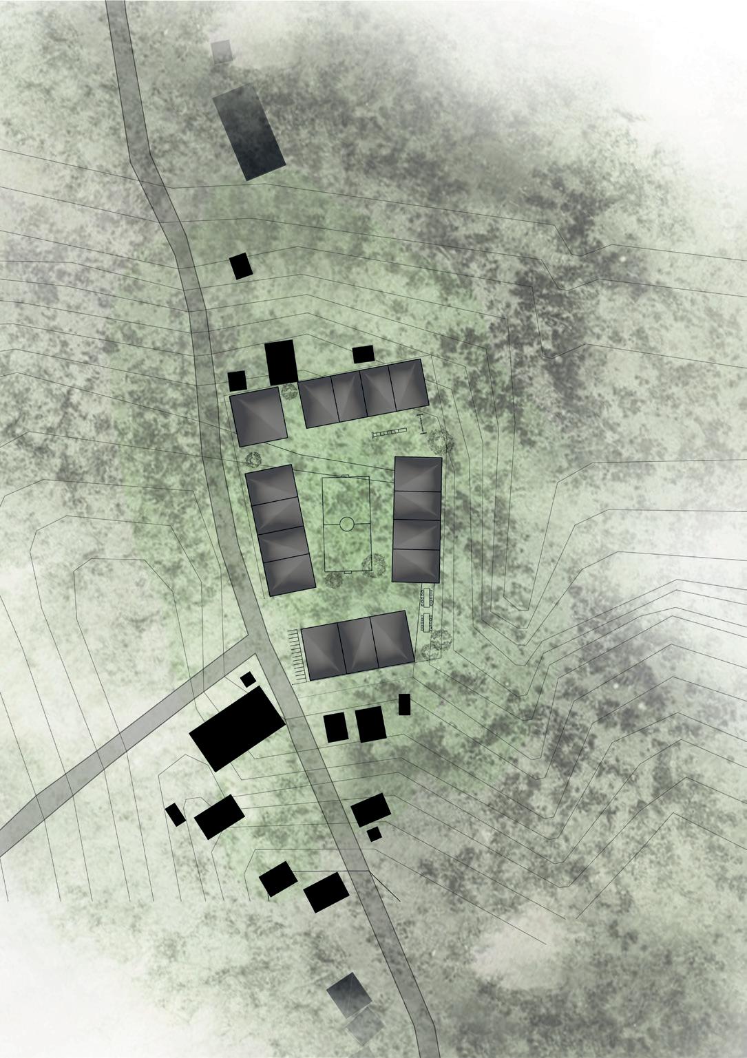All the buildings are grouped around a central recreational space. This is a large courtyard where the children can gather to play. It is also a meeting place for teachers and students, as well as an emergency gathering area in case of earthquake.