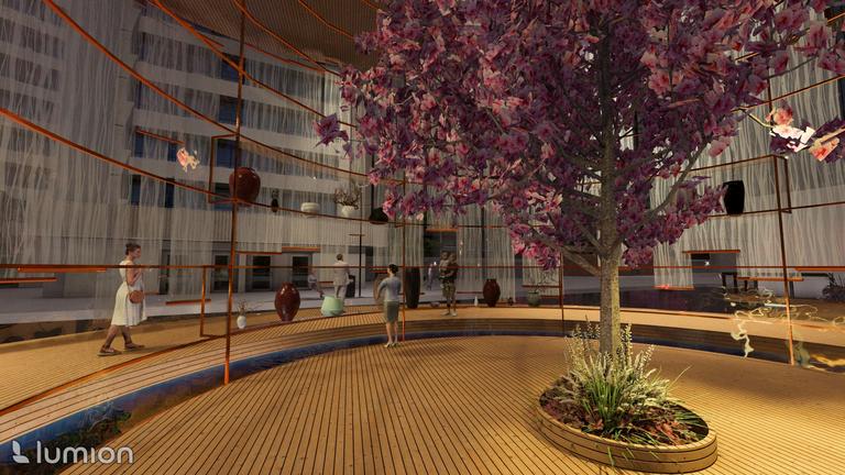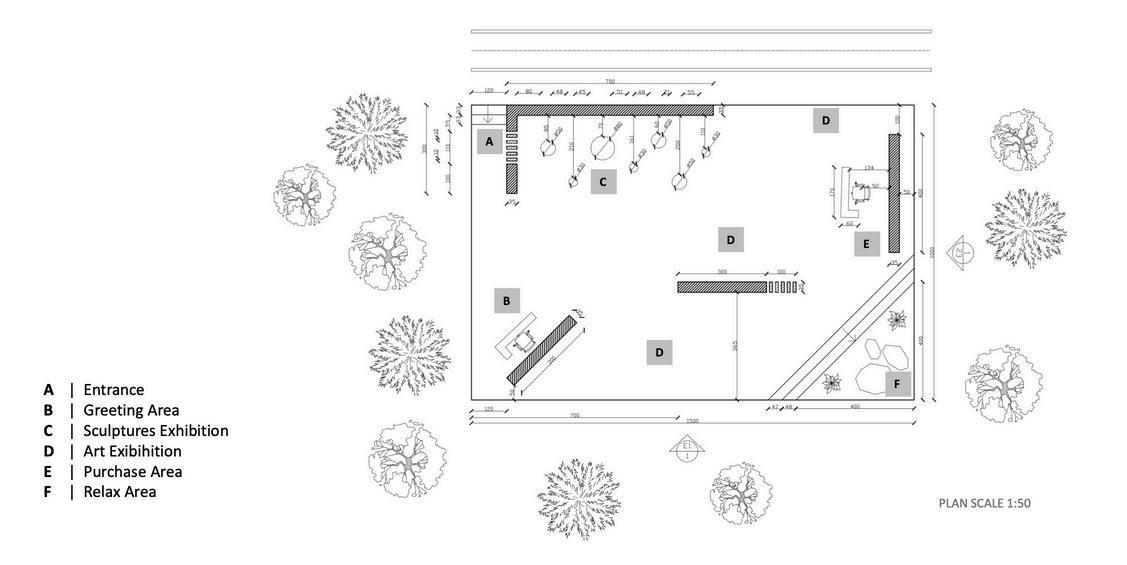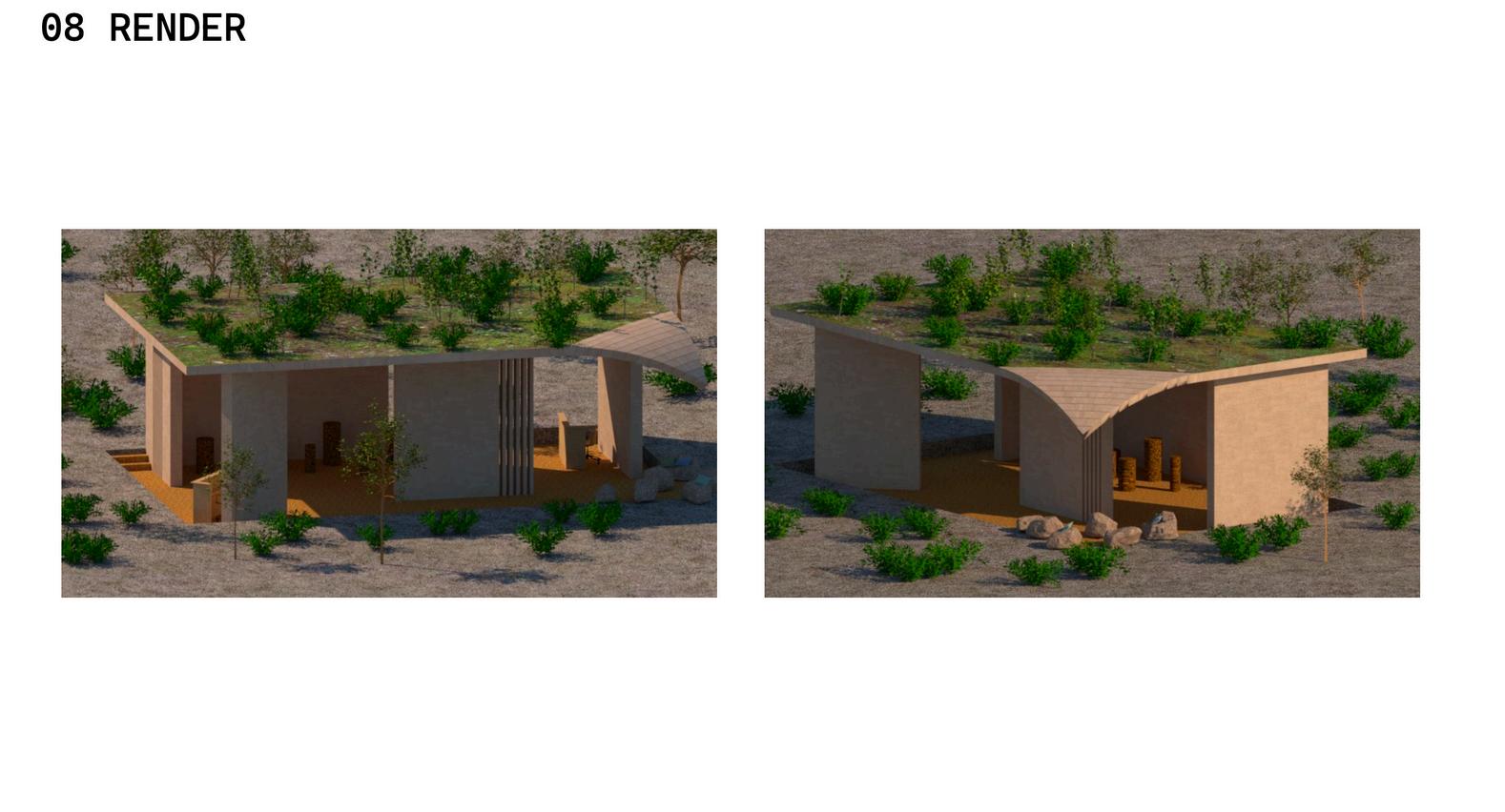 The designs are modeled in AutoCAD and later modeled on Rhino and rendered on Lumion. Building upon the initial sketches and 2D, 3D models have been developed to provide a more detailed and realistic visualization of the exhibition space. These renders highlight key features and offer a comprehensive view of how the elements come together to create an immersive environment.