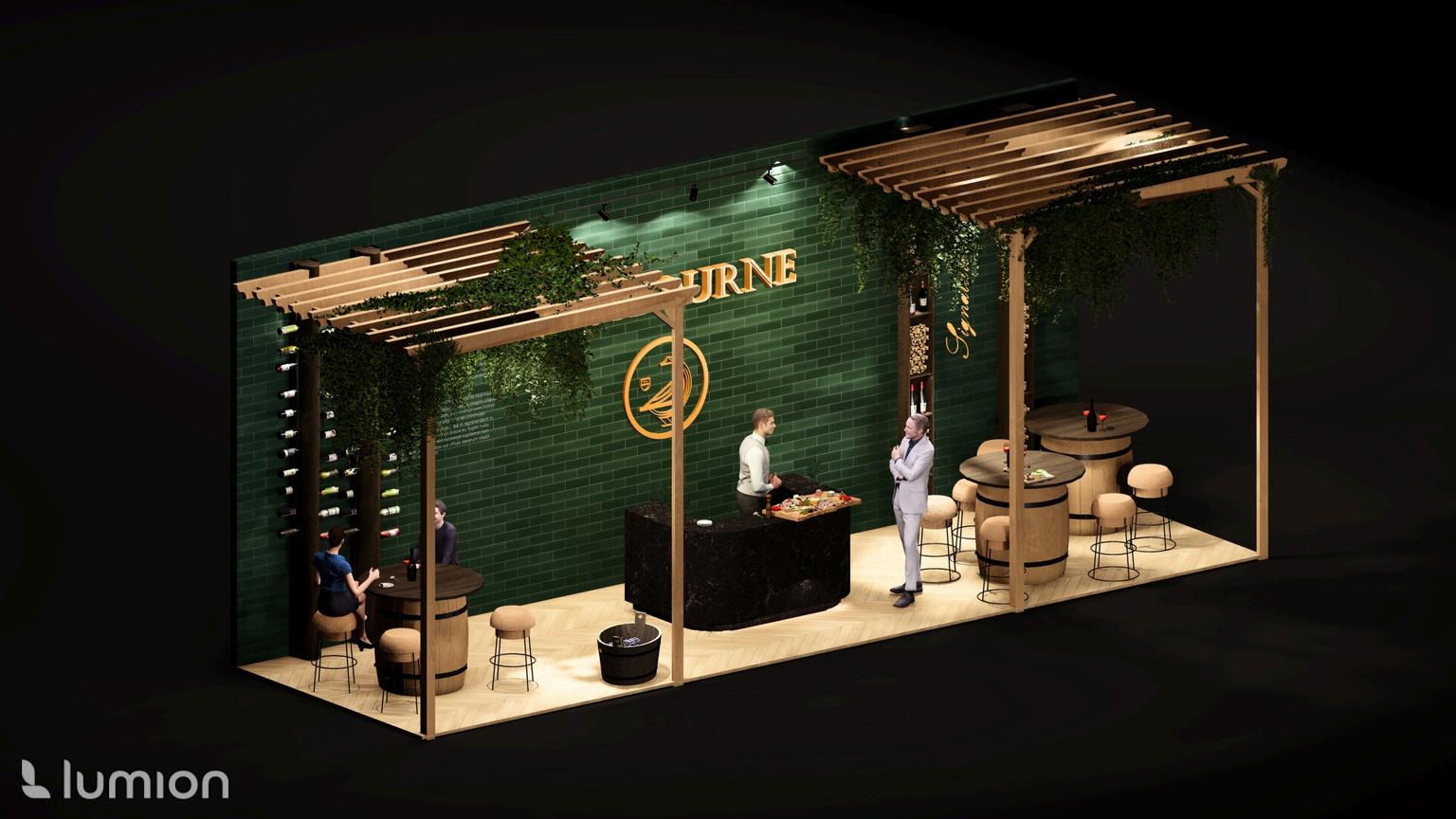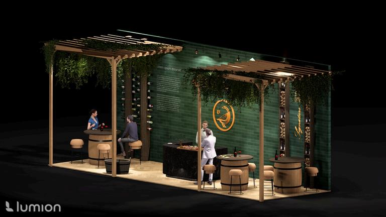 The goal is to conceptualize an immersive experience within an exhibition space measuring 10m x 3m, featuring a 10m back wall and three open sides, with a height limit of 4m. The space will serve three main purposes: creating a networking area to promote the brand, incorporating a custom wine bar, and displaying wine bottles. The overall design will ensure an engaging and immersive experience for visitors.