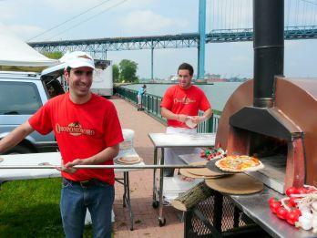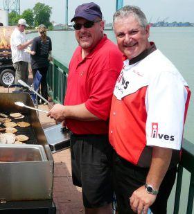 With the Detroit River and the Ambassador Bridge in the background, Conservation Officer Colin Stass from the Lake Erie Unit, along with Port Officer Al Dimena and I attended the 10th annual fishing derby hosted by the Italian Canadian HandiCapable Association on June 3, 2012 at the Windsor waterfront.