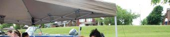 Each year we tow and set up the MNRF Enforcement Outreach Trailer which has proven to be a hit with both the children and their families. The trailer is stocked with items that have been seized, over the years, by enforcement officers from all parts of the Province. They are always topics of discussion by members of the public. Charles and I took turns staffing the trailer and helping the kids bait their hooks and instructing them on how to fish.