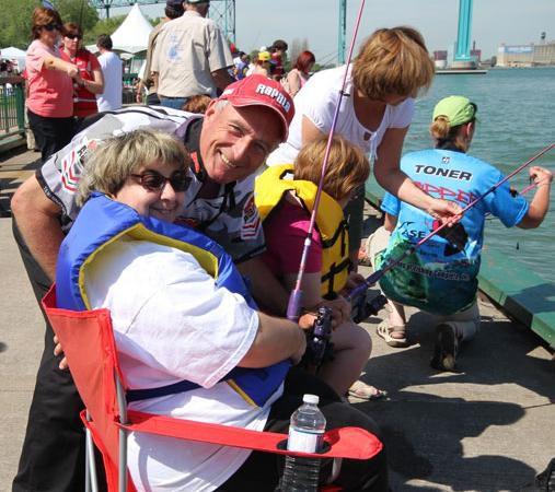 Italo Labignan, host of Canadian Sportfishing TV show and a personal friend of mine, attends every year donating his time and energy to the event. I look forward to talking with him each and every year. In years past, Clay Dyer, American Pro Angler, from Hamilton, Alabama helped children with physical disabilities learn how to cast a line and catch a fish. (Clay was born with no legs, no left arm and only a partial right arm.) He put on a casting demonstration for the crowd, which is something to behold. From his wheelchair, he uses his neck and arm to steadily hold and cast a fishing rod. His motto is "If I can, you can." I am always impressed with him!