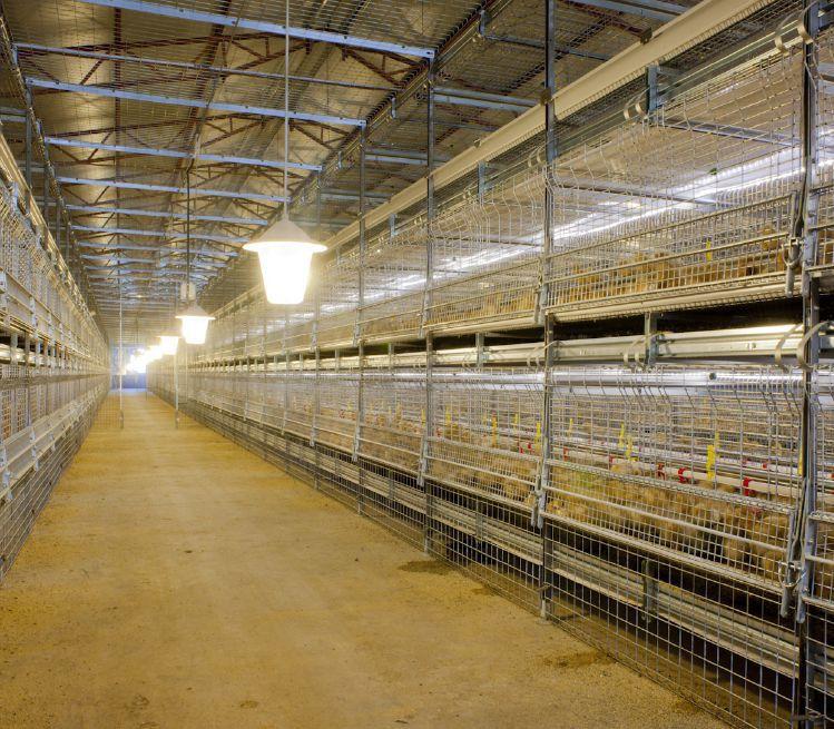 In aviary aisles, LEDs should be used in broad distribution to evenly light the floor.
