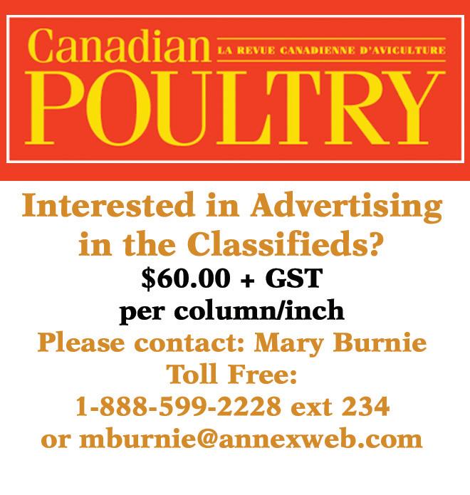 Canada, through the Publication Assistance Program and the Canada Magazine Fund, toward our mailing and editorial cost.ment du Canada pour nos coûts d’envoi postal et nos coûtscations et du Fonds du Canada pour les magazines. www.canadianpoultrymag.com
