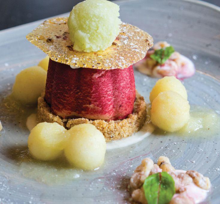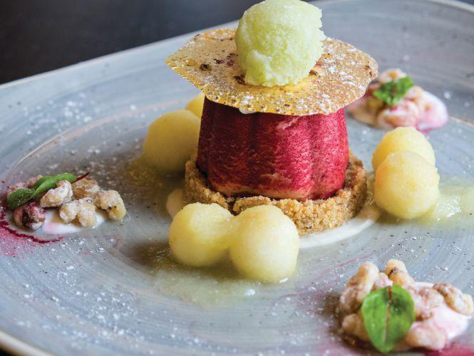 Bakers Garden is one of Sonsmann’s desserts that is continually on the menu. “I am inspired by what comes through the kitchens from local farmers who cater to restaurants looking for produce both