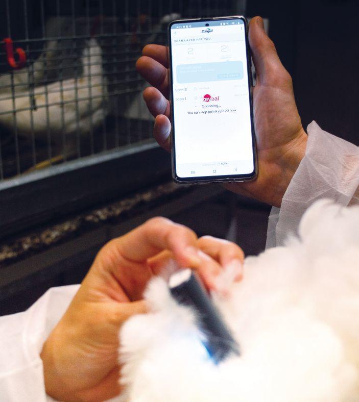 As the scans are completed, the results are uploaded in real-time to the user’s mobile phone and analysed by the REVEAL Layer application. “With this number of hens scanned, REVEAL’s software provides a good sense of whether, for the entire flock, fat pads are within an optimal range,” Payne says.