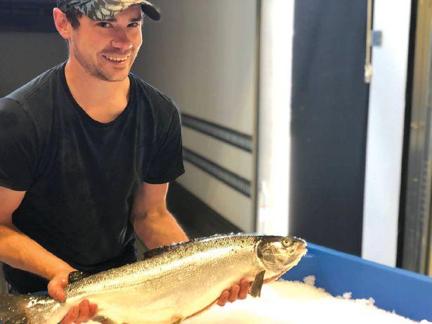Superior Fresh aquaculture manager Kyle Woolever holds Atlantic salmon raised inland by the company