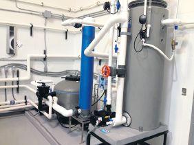 Trout are housed in three 8-by-3-ft circular tanks that Southern sources from Pentair. Plants grow in three deep water culture tray systems, each with twin 86-by-4ft troughs that are built on-site.
