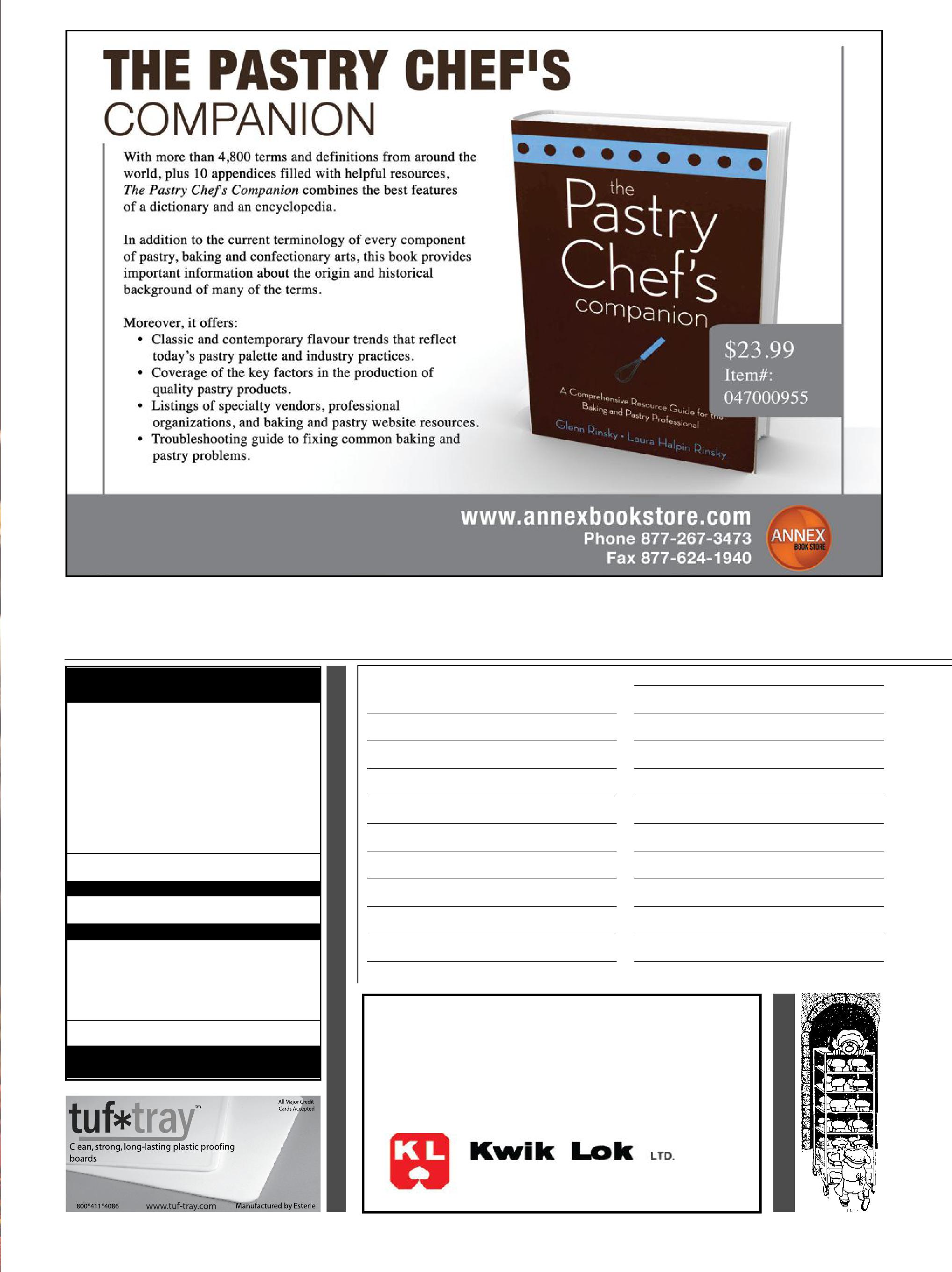 Canada — 1 year $ 30.00 (with gst $31.50 #867172652rt0001, with hst/ Qst $33.90) usa — 1 year $ 45.00 usd best pricing is available online at www. bakersjournal.com