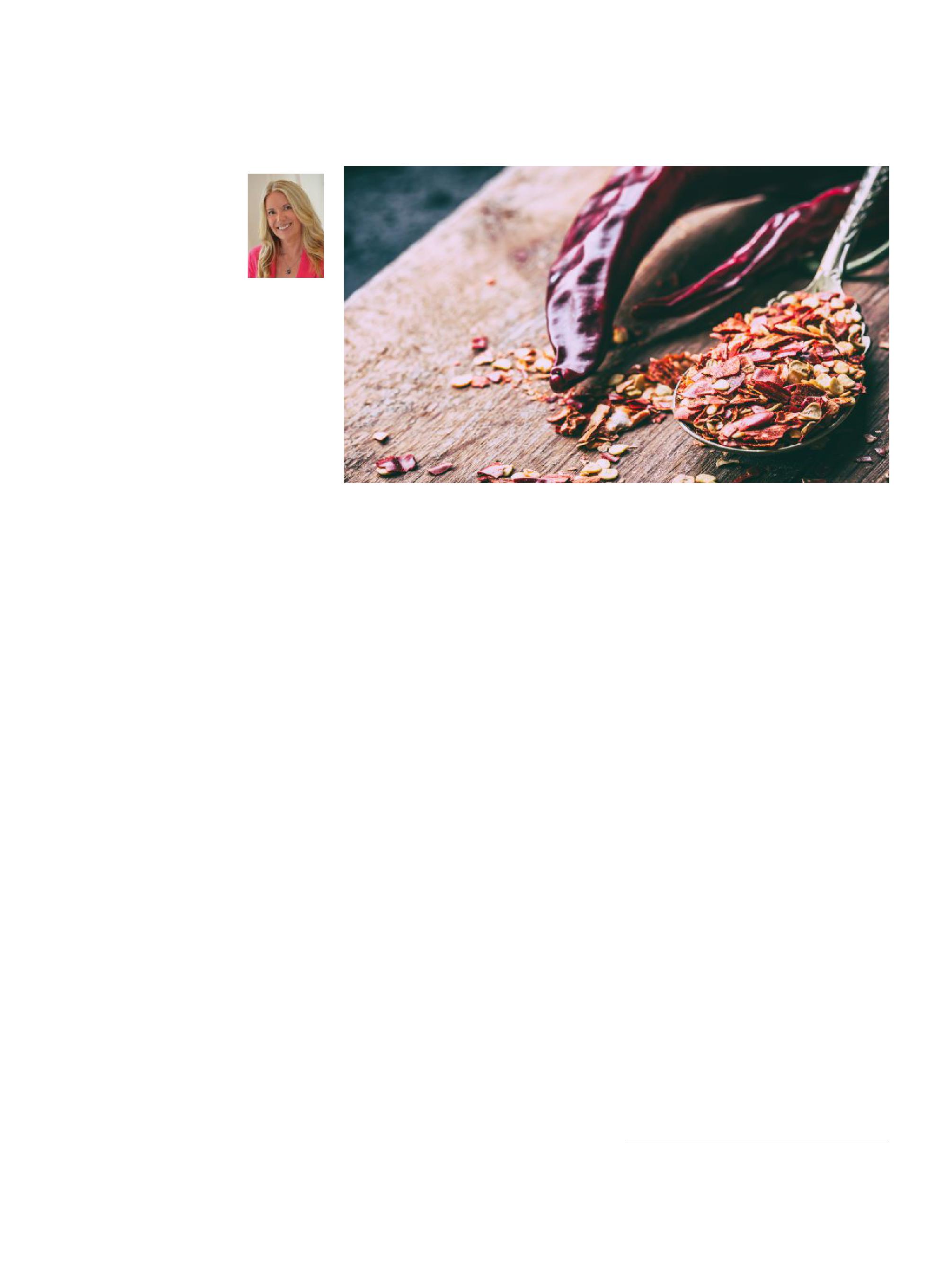 clientele of different palates. So a mild option for those that want to try it without being overwhelmed by the spice and a medium and spicy level for those that want a little more kick or the real deal. It’s also fun for customers to try and push their limits when they see different levels of spice. One week they may visit and purchase the mild and then come back the next to test out the next level.” When it comes to the mainstream segment of the baking sector, finding the right bridge that offers the perfect balance between sweet and heat is important. Elysee-Collen recommends, “We feel that consumers will be looking for a subtle kick in new spicy, hot flavours. As the trend develops and spreads into conventional retailers, the heat intensity will increase in offerings as consumers become familiar with the new flavours. Another trend to look out for is the addition of spicy inclusions as another way to provide heat to baked goods.”