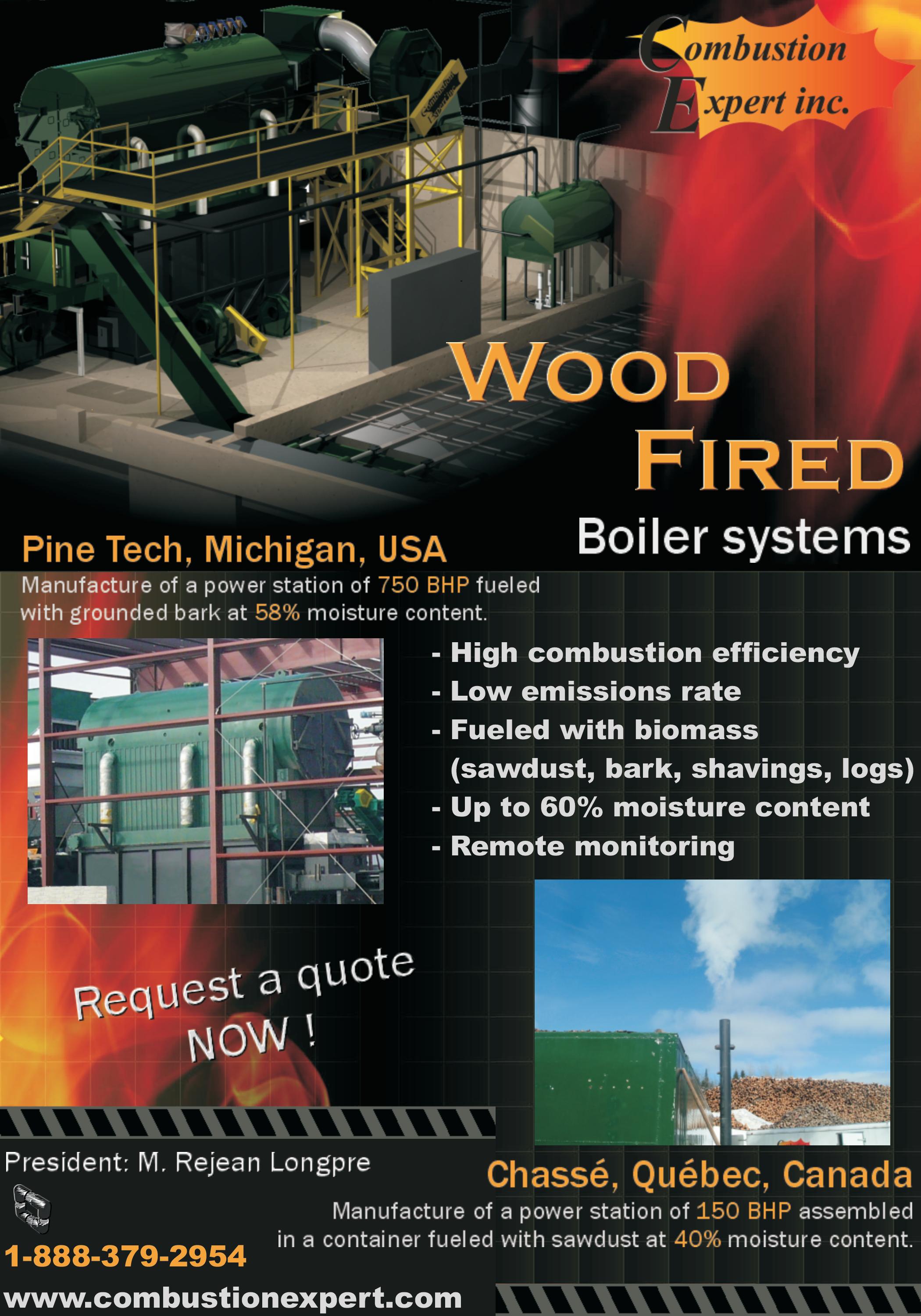 Trois-Rivières, QC – Combustion Expert Inc. has a new biomass burning system that is both compact and efficient, the Quebecbased supplier says. Its ST Series can be installed on boilers up to 800 hp, and offers a host of advantages, including: