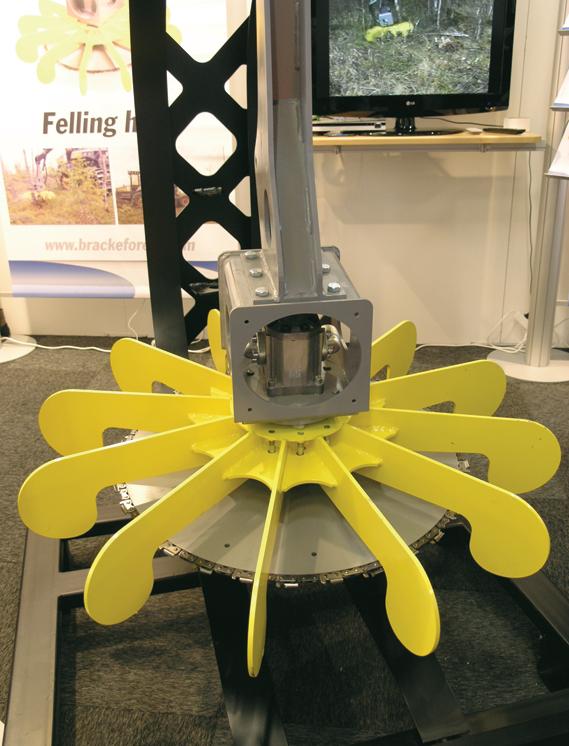 To be sure, readily available harvesting slash and legacy piles are still the lowest-hanging fruit when it comes to biomass piles in Canada. But there are a growing number of applications for smalldiameter or unmerchantable (UMT) tree harvesting for energy in the right conditions and location. There is no shortage of tools to do the job, as World Bioenergy was enough to make an old Tenco shear guy reminisce. Energy wood harvesting options at the show included good old-fashioned, twosided shears, guillotine style cutters, chainsaw driven disc models from Bracke with accumulating arms, or a single mowing style feeling head with chain saw cutter, like the Bracke model at right.