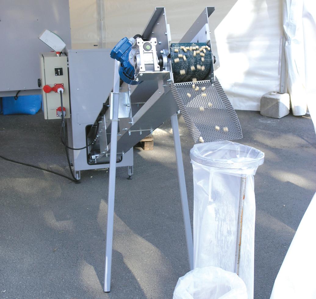 World Bioenergy 2008 boasted several exhibitors with pelletizing options for just about anyone with access to wood fibre and a local market, from small remanufacturers and flooring plants to sawmills with a little extra sawdust and a need to diversify revenue streams. Shown is one of several compact pellet mills from Swedish supplier Morums Mekanisko AB. It makes 50 kg of pellets per hour, dumped automatically into waiting bags. The robust machine is easy to set up and start, and is small enough to be set up in any corner. Show staff told Canadian Biomass that sawdust or shavings with a moisture content (MC) of 18% or less will work, suiting it to any operation using or making dry wood products.