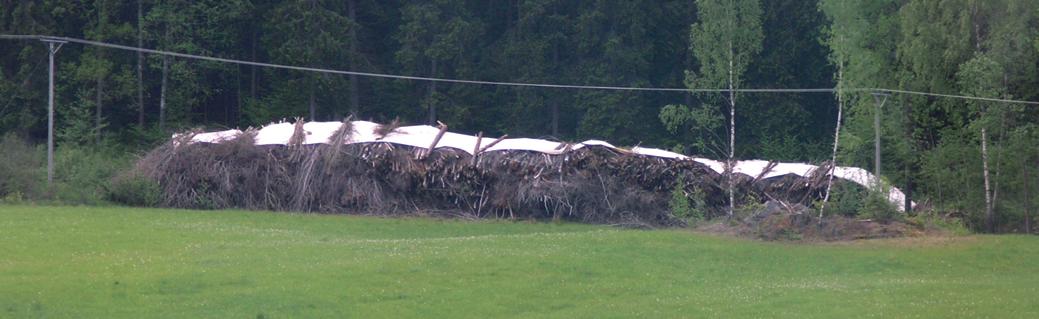 Slash is so valuable in Scandinavia that folks donʼt even want the stuff getting rained on. After harvest, slash is collected by forwarder and neatly piled in rows at the edge of the harvest block to allow it to dry ahead of chipping. In many cases, these slash rows are protected by “energy wrap” like the piles in southern Sweden shown here. The motivation is economic – protected logging residue provides higher heat values than unprotected slash, a realization that comes from thinking about things in KW per hectare rather than our standard tonnes or cubic metres per hectare.