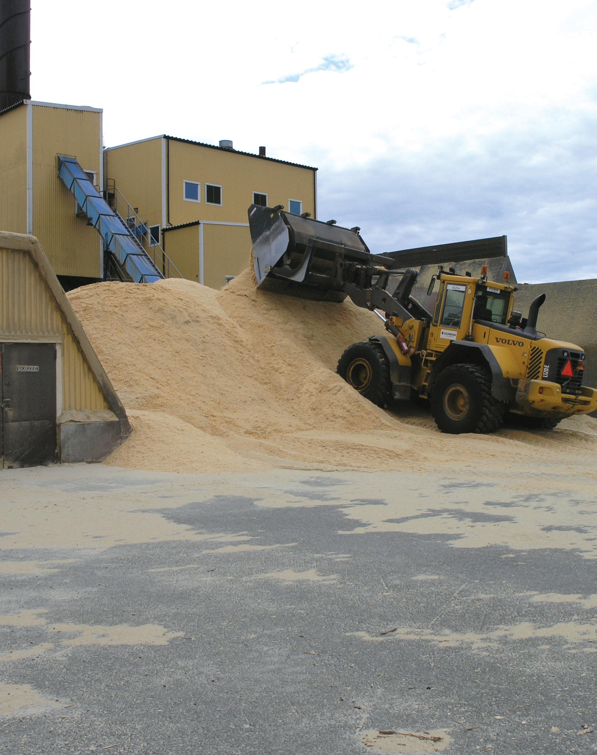 LEFT MAIN: The BooForssjo sawmill uses sawdust from its own operation as well as from other mills to feed its pellet mill, which supplies domestic retail markets in both bulk home and bag delivery.