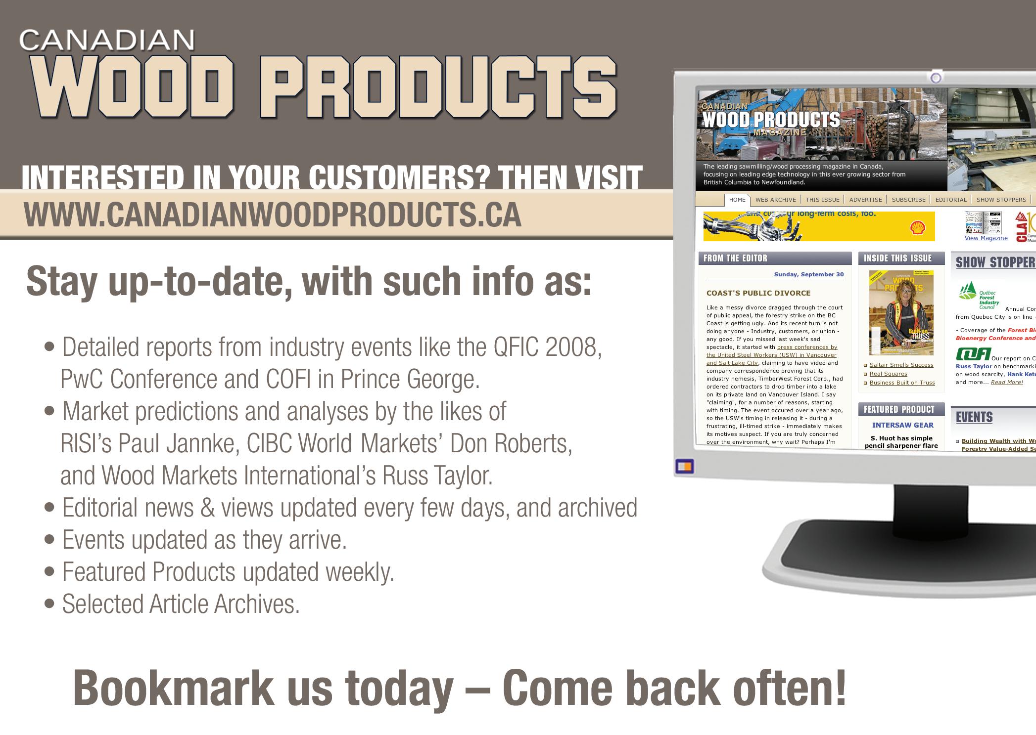 It’s definitely the right time. Biomass, bioenergy, biorefining – you name it and people want to know about it in Canada’s forestry sector and related government departments. With the industry in tough times and energy costs soaring, it makes sense. That’s why we kept running into Canadians (and Americans) on our trip to Sweden’s World Bioenergy 2008 in late May, and why these two groups made up the largest foreign contingent at the international show. We’re on the verge of a biomass explosion on this continent – mark my words. You can read more about this fantastic event starting on page 24.