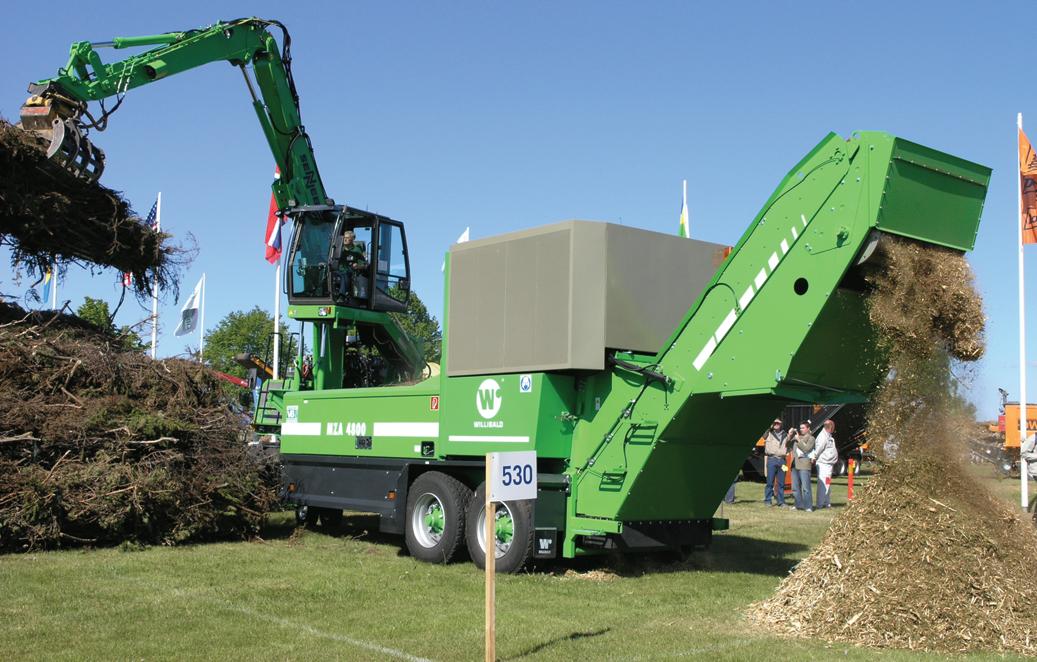 As you can see here, good loaders and purpose-built grapples are keys to getting good production from biomass grinders, chippers and hogs. Willibald is another option for processing harvest slash or yard wood. The Willibald MZA 4800 mobile shredder is designed for green waste and harvest residuals, although the manufacturer makes a range of smaller (MiniMax) biomass shredders as well. Willibald has a Canadian distributor in Embrun, ON, but is looking to expand distribution. www.willibald-gmbh.de.