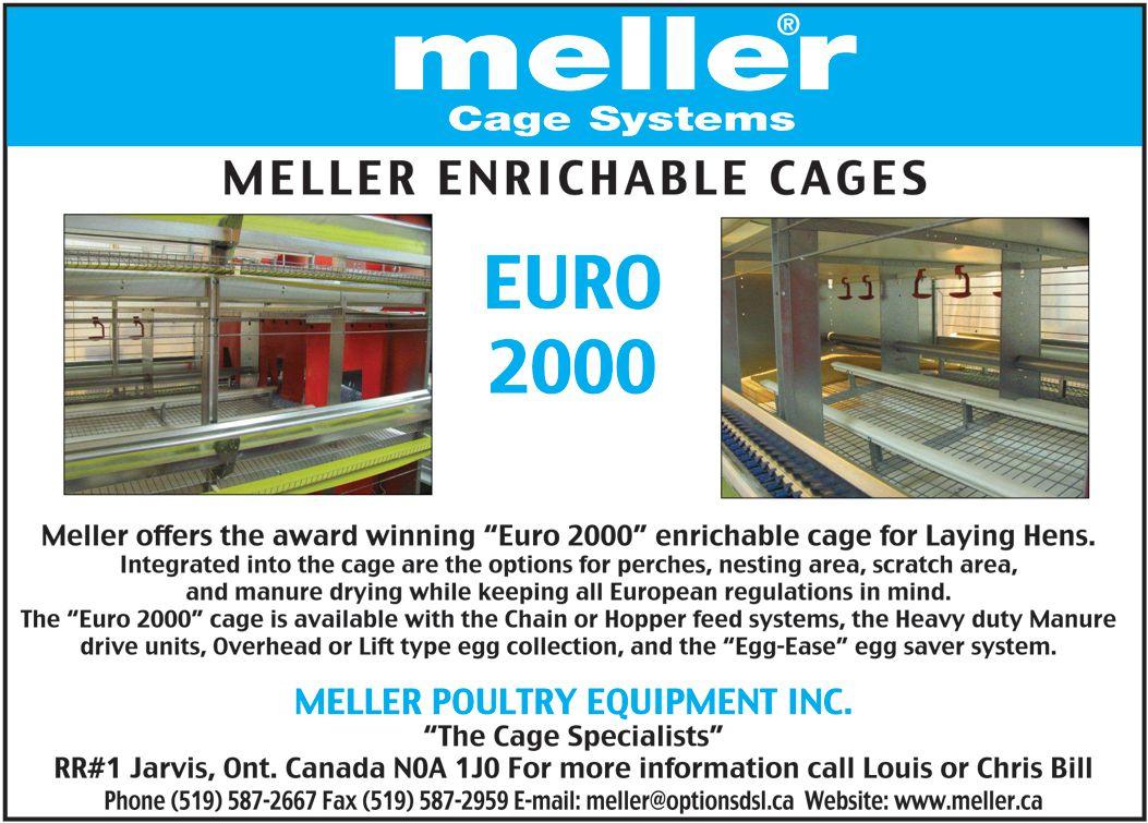 MEllER pOultRY EquIpMENt - North American Distributors for Germany’s #1 Meller Poultry cage systems, and the Jansen Nesting, Slating and conveyor system for Breeers, free range or Organic Flocks. The Meller Layer and Pullet cages with chain, hopper, or auger feeders. Plastic manure belts and heavy duty drives. Direct entry egg elevators or lift systems and egg conveyors. Available in 2-8 tier heights. Factory trained technicians,well stocked warehouses in Ontario and Michigan, and we service what we sell. We aim to be the best (not the biggest) in the industry.