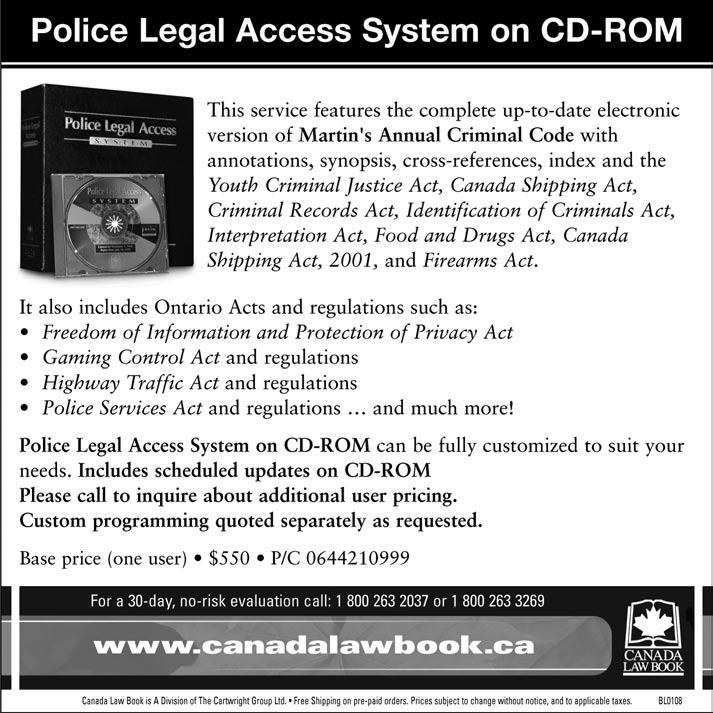 For more information, check the commission’s website (www.mentalhealthcommission.ca). For more information about joint police/mental health systems ventures, visit www. pmhl.ca. Email your ideas about law and mental health issues to Dr. Dorothy Cotton (deepblue@blueline.ca).