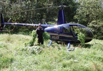 bulance Service, his training has also proved valuable. He recently flew over a rural area and spotted an ATV accident, with a youth lying nearby on the ground. He radioed for police support, landed and administered first aid until the BC Air Medi-Vac helicopter arrived to take the injured person to hospital. This fast assistance to seriously injured people has saved lives – at least five in the two years Air 9 has been flying, Russell notes. His R44, with a call sign of Air 9, can fly up to 225 kilometres an hour but typically patrols at 150