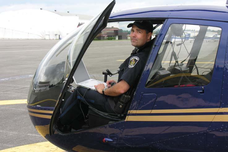 Having a helicopter is nothing new for residents of the city and surrounding area, thanks to the efforts of Special Constable Dean Russell, who uses his own personal helicopter, also an R44, volunteers his time and even covers operating expenses and maintenance for a test program run since May 2005.