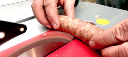 The inability for a tablesaw to cut any kind of meat is one of those capabilities that should be more widely appreciated than it is. A saw like this simply will not cut meat of any kind, including you and your fingers. I own the Bosch Reaxx portable table saw and what happens when you push a sausage into the blade is amazing. As soon as the blade hits the first few thousandths of an inch of meat, there’s a bang and the blade simply disappears. Look at the sausage and it doesn’t even have a scratch – not even a tiny one. Swap in a new compressed gas cartridge for the spent one after a safety event like this and you’re back in business in minutes and at minimal cost. Bosch had to take the Reaxx off the