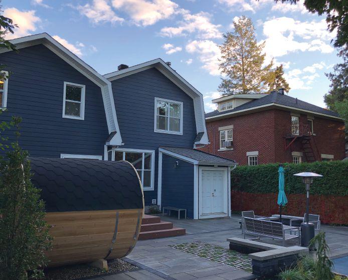 I think about landscaping as if I’m creating a frame for a house. If a frame for a painting is too gaudy, it throws off the painting. If the frame is too minimal then the painting shows up too much. It’s about creating a balance. Usually, clients want a “main floor” outside – a living room, a dining room and a kitchen. However, these clients wanted a striking but low-maintenance garden, a large lounge area, a deck with a built-in kitchen counter and a sauna.