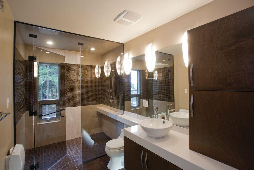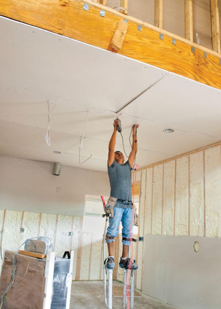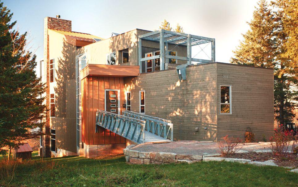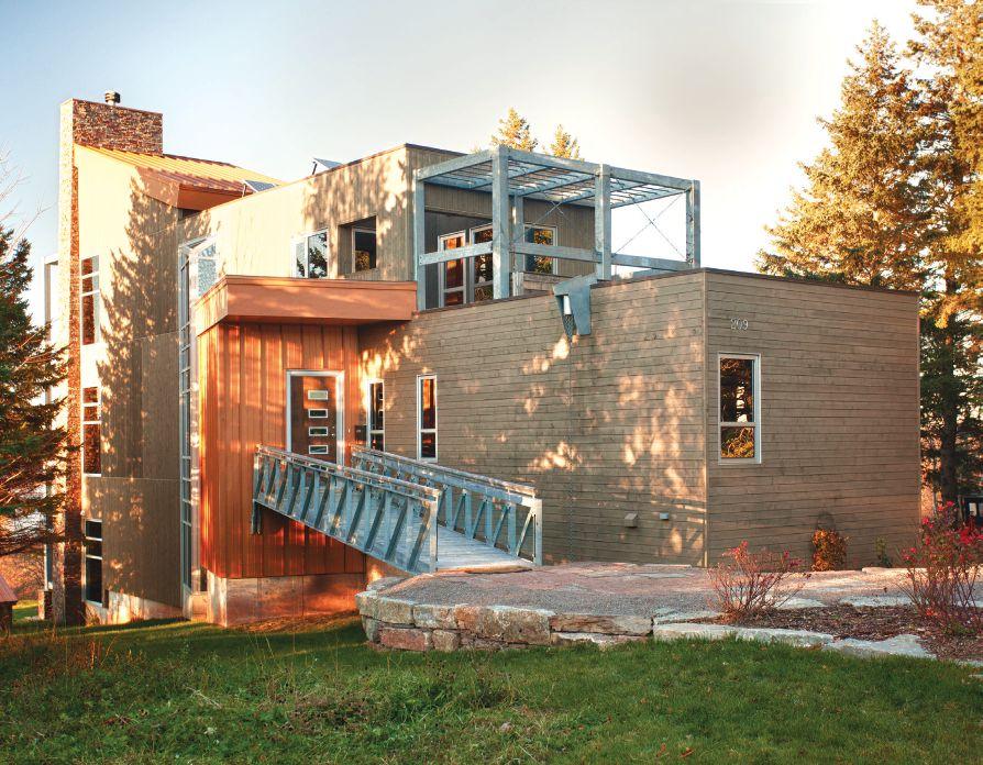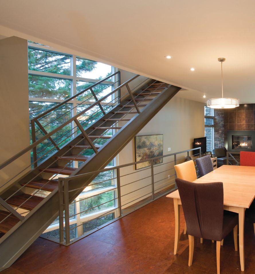 build,” says Gallant, starting with the 2x6 wood frame atop a poured concrete foundation. “The only change was the upgrade to higher insulation values, R30 in the walls and R50 in the roofs. We incorporated rigid foam thermal breaks between the siding and framing, and gave attention to the latest air barrier technology and better window seals.”