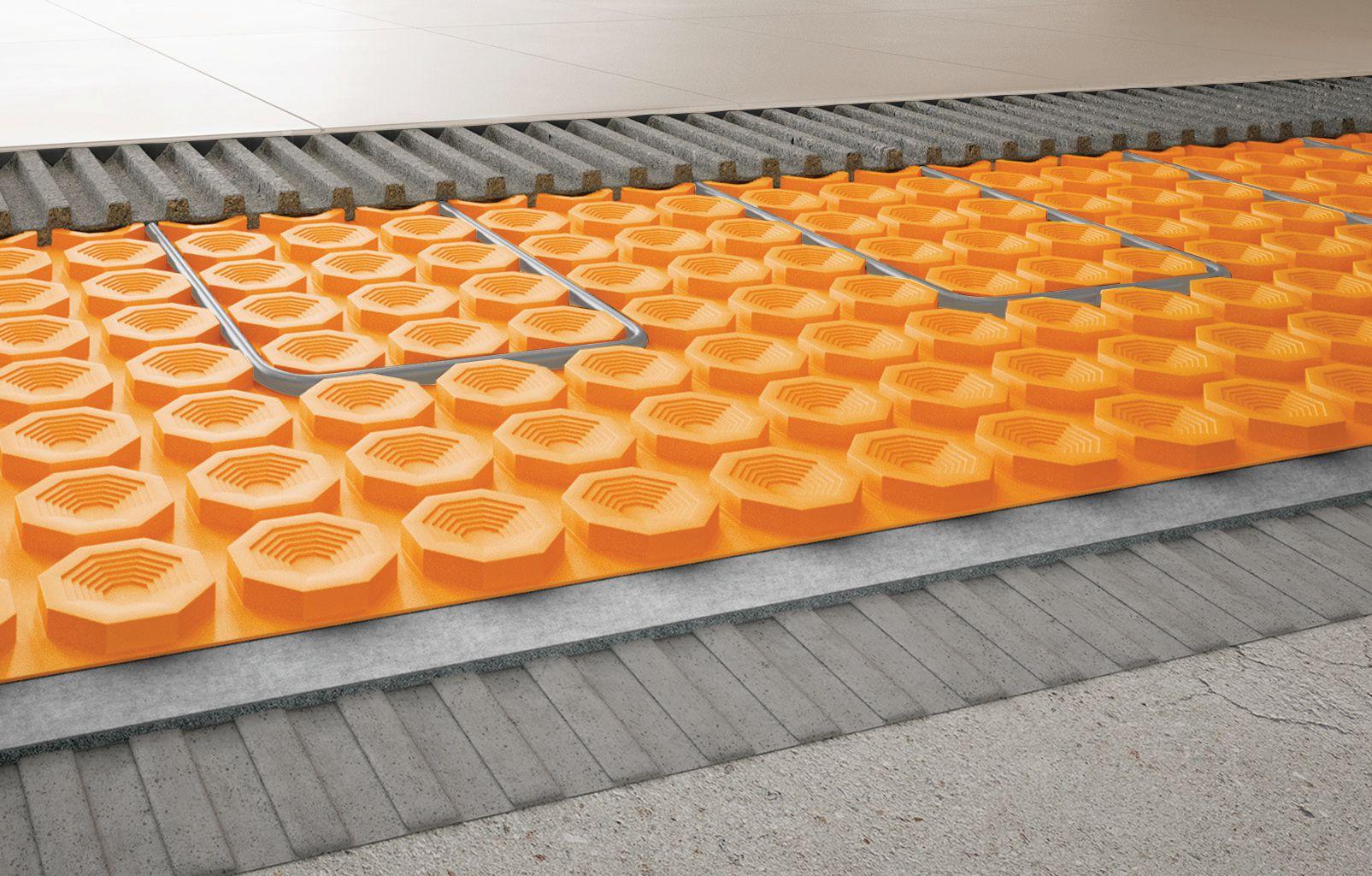 Schluter®-DITRA-HEAT-TB is the only electric floor warming system with an integrated thermal break, and is ideal for tiled floors over concrete.