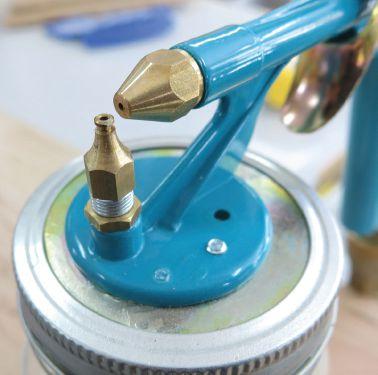 You probably don’t specialize in wood finishing, but finishing wood and spraying liquids is something contractors need to do from time to time. Simplicity, reliability and effectiveness are why I like the Little Critter sprayer. I’ve used and tested many brands and types of sprayers over the last 20 years, but this cheap little gun is unbeatable for small and medium-sized jobs, especially with waterbased urethane. Besides the fact that you can run it off a portable trim compressor, if necessary this gun is dead simple and easy to keep clean. A standard mason jar holds the finishing liquid. Air flowing over an adjustable outlet pipe atomizes the liquid without it ever touching any needle. Simply raise or lower the threaded, spring-loaded outlet to add more or less finishing liquid to the spray stream. Have you ever had trouble getting a smooth finish brushing on waterbased urethane? Of course you have. The Critter handles thin paint, but it really shines with waterbased urethane. This thing has sufficient output to coat about 10 square feet in less than two minutes. I bought mine from Lee Valley Tools for $55. Save jam jars from your grandmother to use as paint pots.