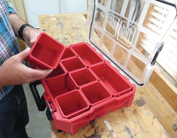 There’s no point in having all the little things you need to be efficient if you can’t find the little things when you need them. That’s where organizer trays and cases come in. Trouble is, most of them are bad. I know because I’ve used and trashed different ones over the years. The typical faults are all the same: lids and clasps that fail; internal dividers fail to keep small items separate; designs that are too small to be useful on a jobsite. The Milwaukee organizer is a serious contractor solution that works.