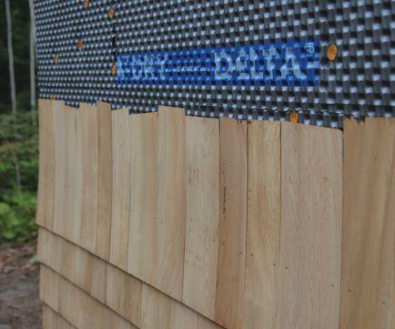 This under-used approach is one of my favourites because it combines natural good looks with amazing durability. I’ve seen properly installed cedar sidewall shingles last more than 50 years without any maintenance at all. You get the beauty of wood without the maintenance trap that most other forms of wood involve. Sidewall shingles also give you a lot of creative control. It’s easy to cut and installed patterns in the shingles that add a lot of beauty. Besides, working with real cedar shingles all day is a great thing. The work is clean, quiet and it smells good. You’ll get the longest lasting results if shingles are installed over some kind of vertical drainage detail. If moisture creeps in around windows or doors, or if condensation develops behind the shingles, it’s free to drain down and out of the wall.
