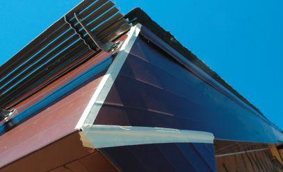 edge of the fascia (not the usual aluminum nails), driven into over-sized, predrilled holes in the metal. This lets the aluminum expand and contract without rippling as temperature changes. This is especially important if you’re installing brown fascia because it picks up more of the sun’s heat. This is also why I use polyurethane caulking to glue fascia joints together instead of anchoring face joints with nails driven into the wood. Tape the joints together while the caulking hardens and the aluminum remains free to expand and contract without buckling.