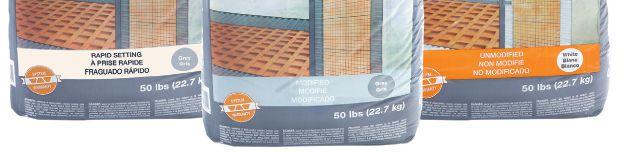 • Three types of thin-set mortar available: SETTM Premium unmodified
