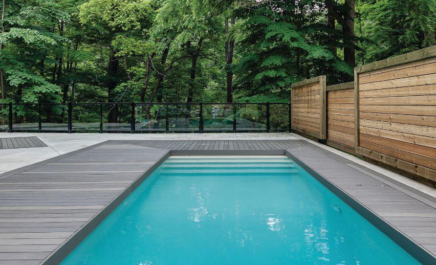 Opposite: It took a year and a half to receive permits for the pool. Originally planned to run across the rear of the house, parallel to the ravine edge, the pool had to be downsized and relocated to the side of the house away from the ravine edge.