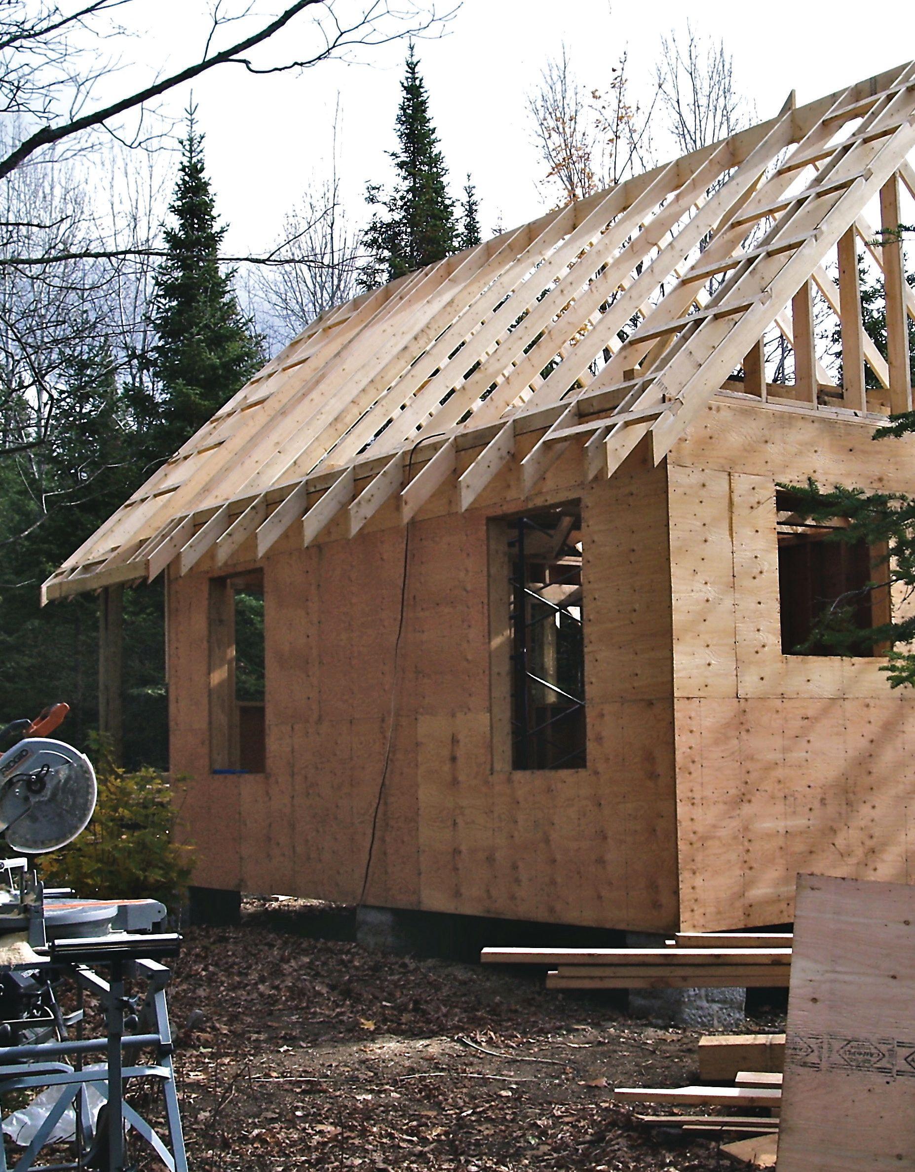 There are two reasons a covered porch is better than an ordinary open deck, especially at a country place. First, it let’s your client enjoy the outdoors more often. Covered porches provide a transition zone between indoor space and outdoor space – something that hardly happens in the city. Sitting under a porch roof during a rain is one of the great reasons to own a cottage. But on a practical level, a covered porch also does a lot to keep windows and doors in good shape by protecting them from the full brunt of the weather. A porch will keep driving rains away from a door, for instance, ensuring that leaks don’t happen. Keep the design simple by framing with rafters and lumber so the porch looks good from underneath. Prefinish the parts before installation or treat the underside with a wood weathering wash like the roof shown here. Use construction-grade two-by material for the sheathing and you’ll have lots of wood thickness to hide roofing nails.