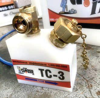 Eliminating worry and uncertainty is what a Canadian invention called The Clozer (www.theclozer.ca; 855-592-5888) is all about. It’s a simple system that some of your clients will love you for recommending. Designed and manufactured by 40-year veteran Ontario plumber Brian Feeney, it’s a portable, flowactivated electric pump unit with a built-in antifreeze reservoir. The pump connects to ordinary valves spliced into the hot and