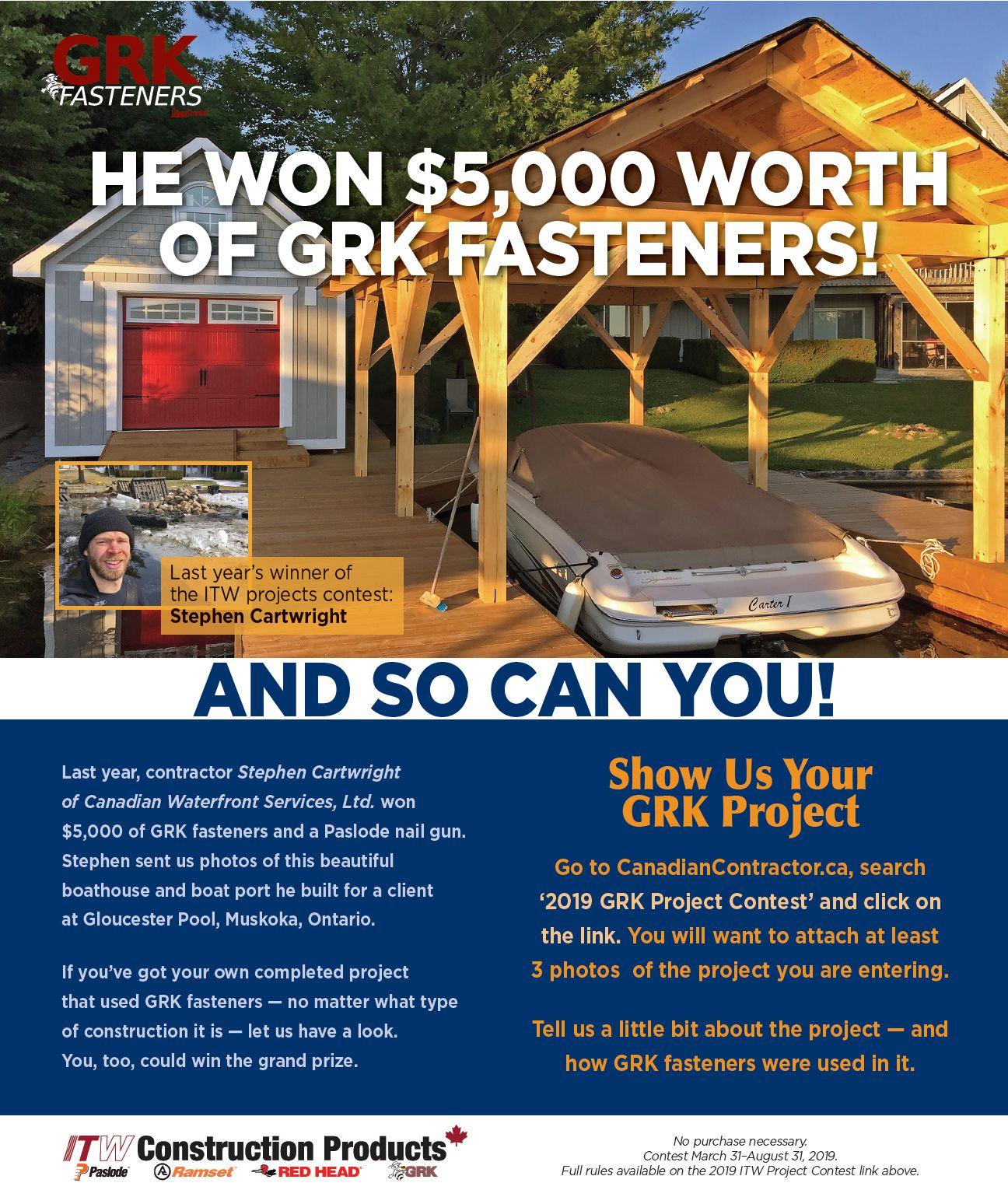 Entries close September 5, 2019. The winner will be announced September 10, 2019 on our website. The best contractorsubmitted entry, as judged by our panel, will