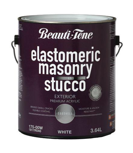 A premium flexible coating that is 100 per cent acrylic elastomeric resin. Perfect for vertical exterior stucco, masonry, concrete and wood substrates. Effectively fills and bridges gaps up to 1.5mm (1/16”). Excellent elasticity and elongation. Great adhesion and durability. Outstanding alkali and efflorescence resistance on properly prepared substrates. Mildew resistant. Outstanding waterproofing protection against wind-driven rain. Excellent resistance to chalking and dirt pick up. Low sheen finish. Two thick coats are required. Tintable to light colours. Four litres will cover up to 9 to 12 square metres (90 to 120 square feet per coat). VOC <100g/L. Available at Home Hardware and Home Building Centre locations. Made in Canada.