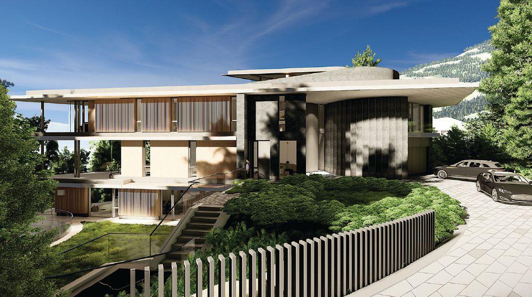 A rendering of the Kadenwood Residence shows an array of cantilevered elements in both concrete and steel.